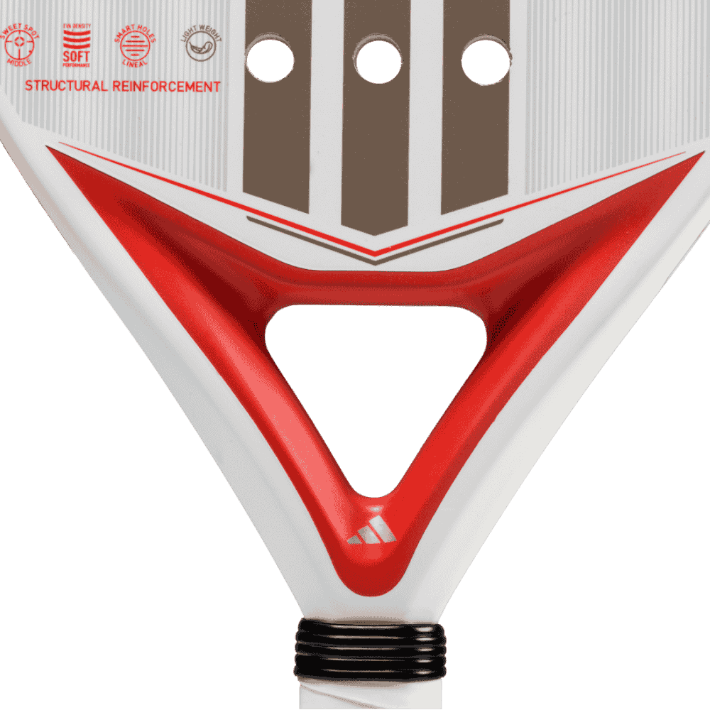 The ADIDAS MATCH LIGHT 3.4 is an excellent choice for players just starting their padel journey, offering an ideal blend of comfort and performance. Its lightweight design ensures fluid handling and agility, making every stroke feel effortless on the court. The versatile all-round shape strikes a great balance between control and power. Powerful shots thrive thanks to structural reinforcements that provide just the right amount of rigidity, while the innovative Smart Holes Lineal technology with equidistant holes boosts the striking surface for better performance and durability. The combination of fibreglass and low-density EVA Soft Performance foam delivers exceptional ball output along with a comfortable feel during matches.