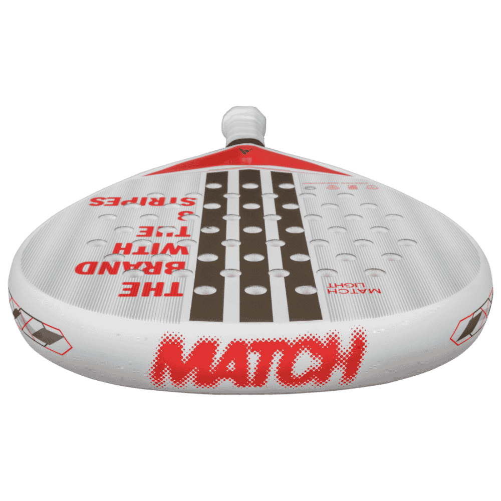 The ADIDAS MATCH LIGHT 3.4 is an excellent choice for players just starting their padel journey, offering an ideal blend of comfort and performance. Its lightweight design ensures fluid handling and agility, making every stroke feel effortless on the court. The versatile all-round shape strikes a great balance between control and power. Powerful shots thrive thanks to structural reinforcements that provide just the right amount of rigidity, while the innovative Smart Holes Lineal technology with equidistant holes boosts the striking surface for better performance and durability. The combination of fibreglass and low-density EVA Soft Performance foam delivers exceptional ball output along with a comfortable feel during matches.