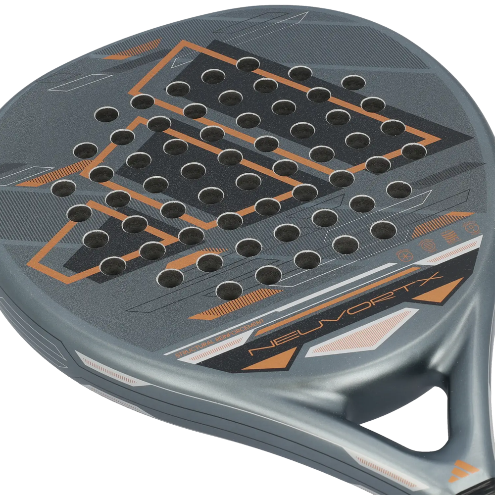 The Adidas Neuvortx Cooper is a padel Racket designed for those seeking a balanced performance between control and power. Its round shape ensures a wide and centered sweet spot, facilitating precision in every shot. With a weight of 360 to 375 grams, it offers a perfect combination of maneuverability and stability, easily adapting to the demands of intermediate play. Additionally, its medium-high balance adds extra power without compromising control, making it a versatile Racket for evolving on the court.