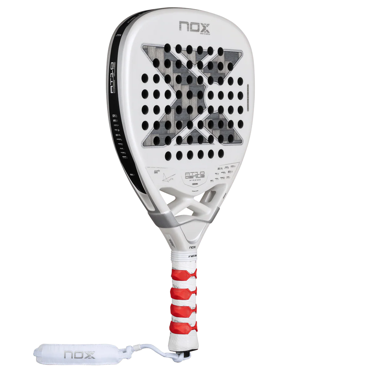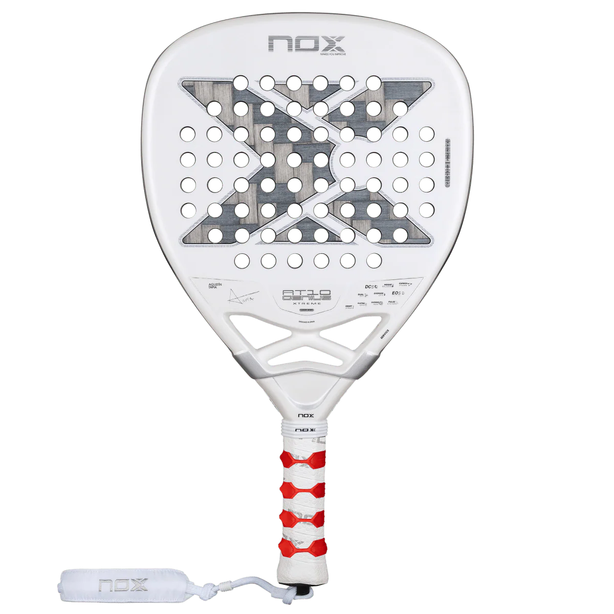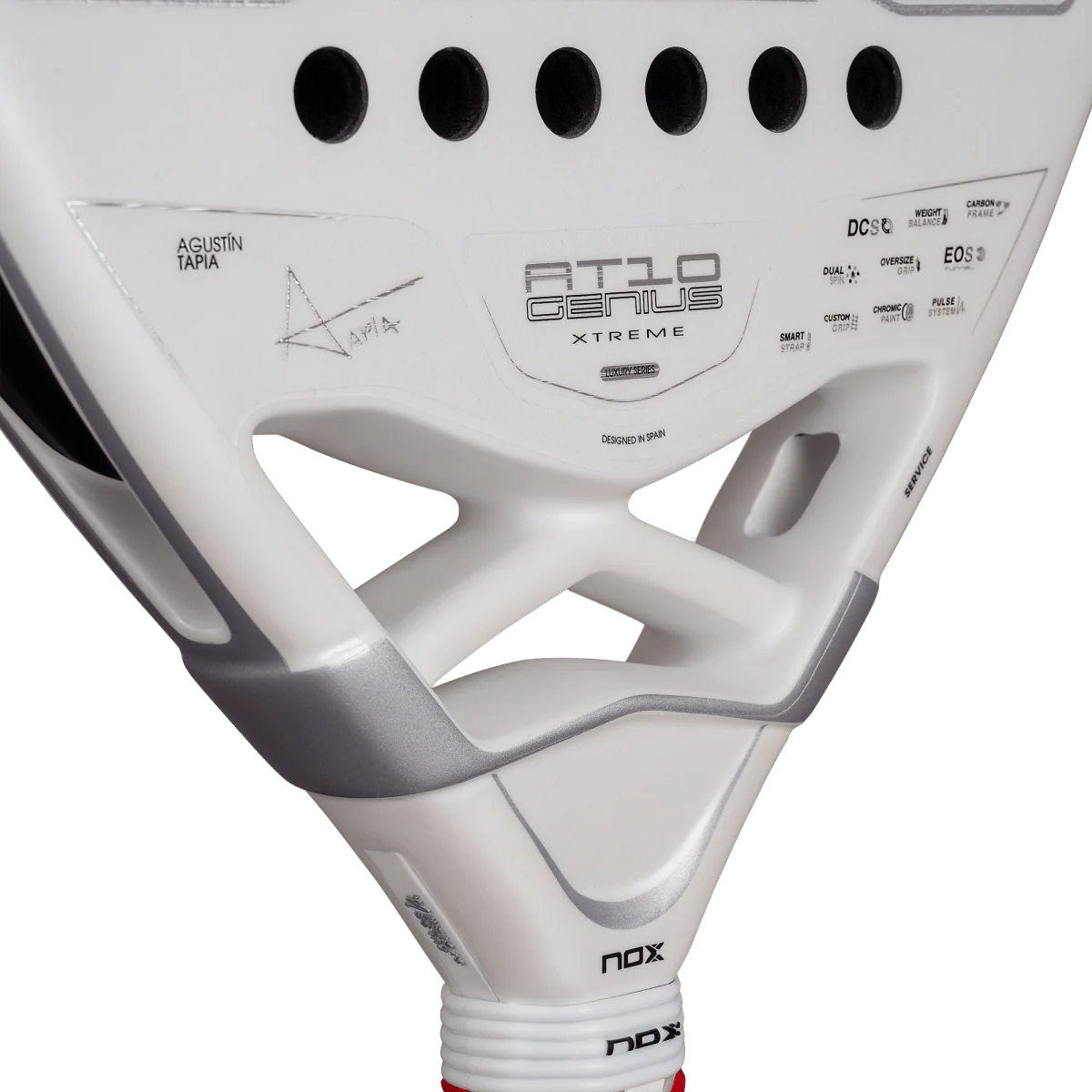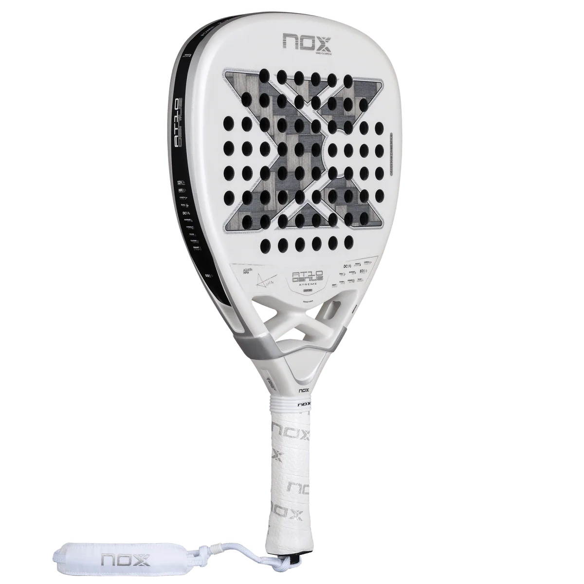 Its diamond shape, high balance and longer grip offer offensive play without compromising control. It features the key innovations of the new AT10 collection: the Weight Balance counterweight system, allowing personalised racket balance, Photochromic Paint reactive finish and the Dual Spin surface, which enhances spin generation. In addition to a redesigned mould, it debuts the new 12K Alum Xtrem Carbon, an exclusive NOX development that provides greater stiffness, a finer and more uniform surface, increased durability and stable performance even under extreme temperature changes.