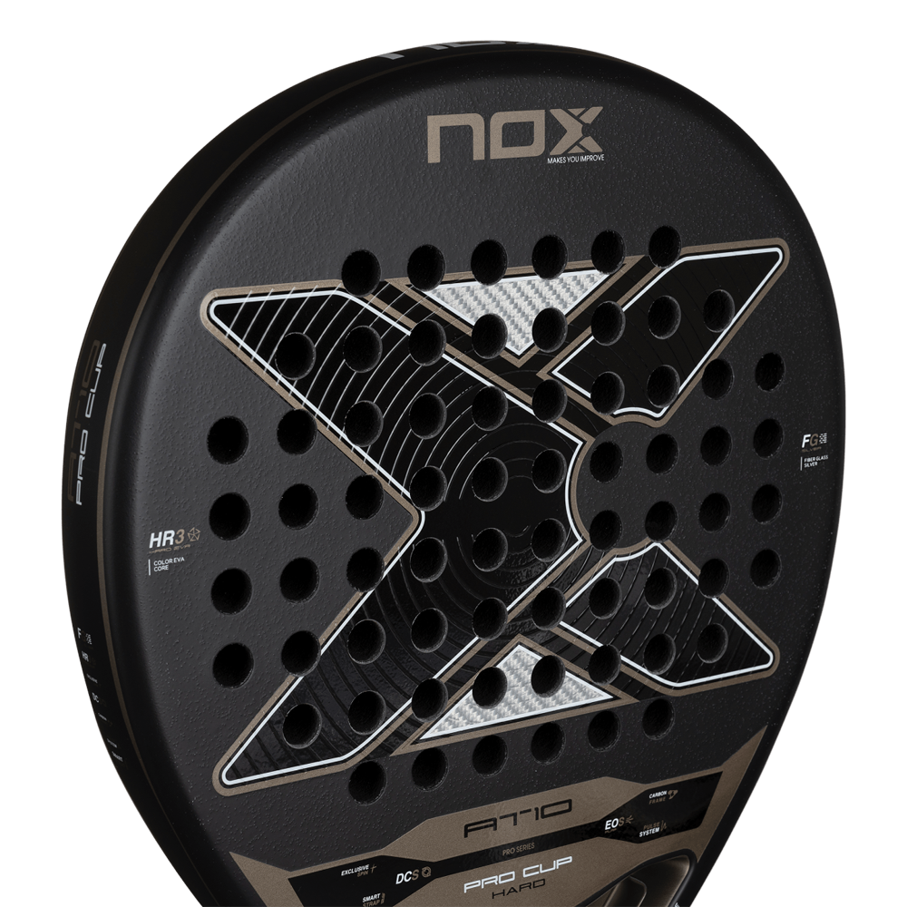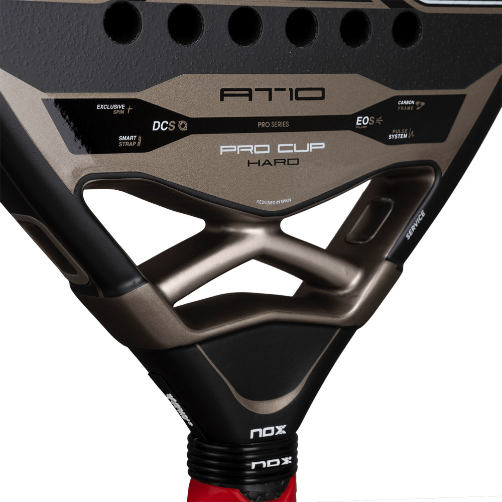 The new AT10 Pro Cup HARD 2026 updates its design while maintaining the essence of an iconic racket, now featuring the mould used by Agustín Tapia in 2025. It incorporates the latest high-performance innovations such as the EOS Flap, which enhances aerodynamics and manoeuvrability, and the Pulse System, which reduces vibrations for a more comfortable and stable game.