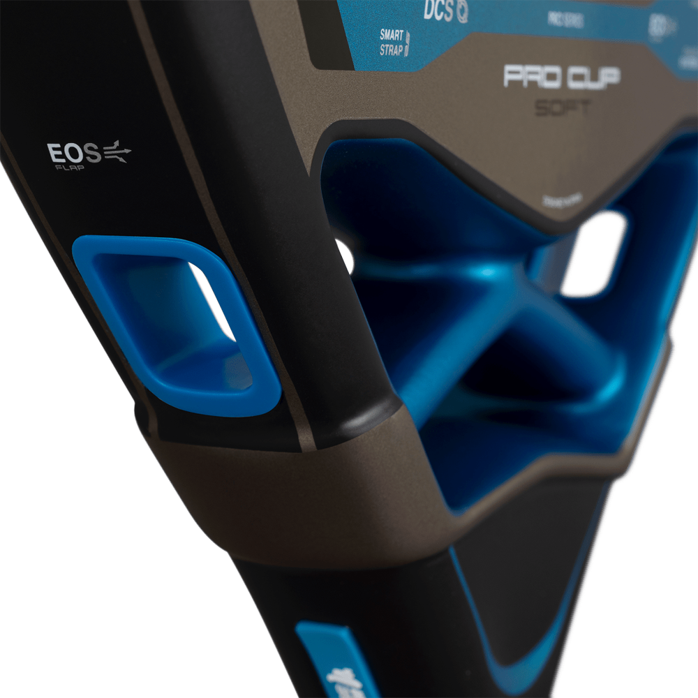 The AT Pro Cup Soft 2026 evolves with the mould of Agustín Tapia’s 2025 racket, incorporating advanced technologies such as the EOS Flap, which improves aerodynamics and manoeuvrability, and the Pulse System, designed to reduce vibrations and maximise comfort on every shot.