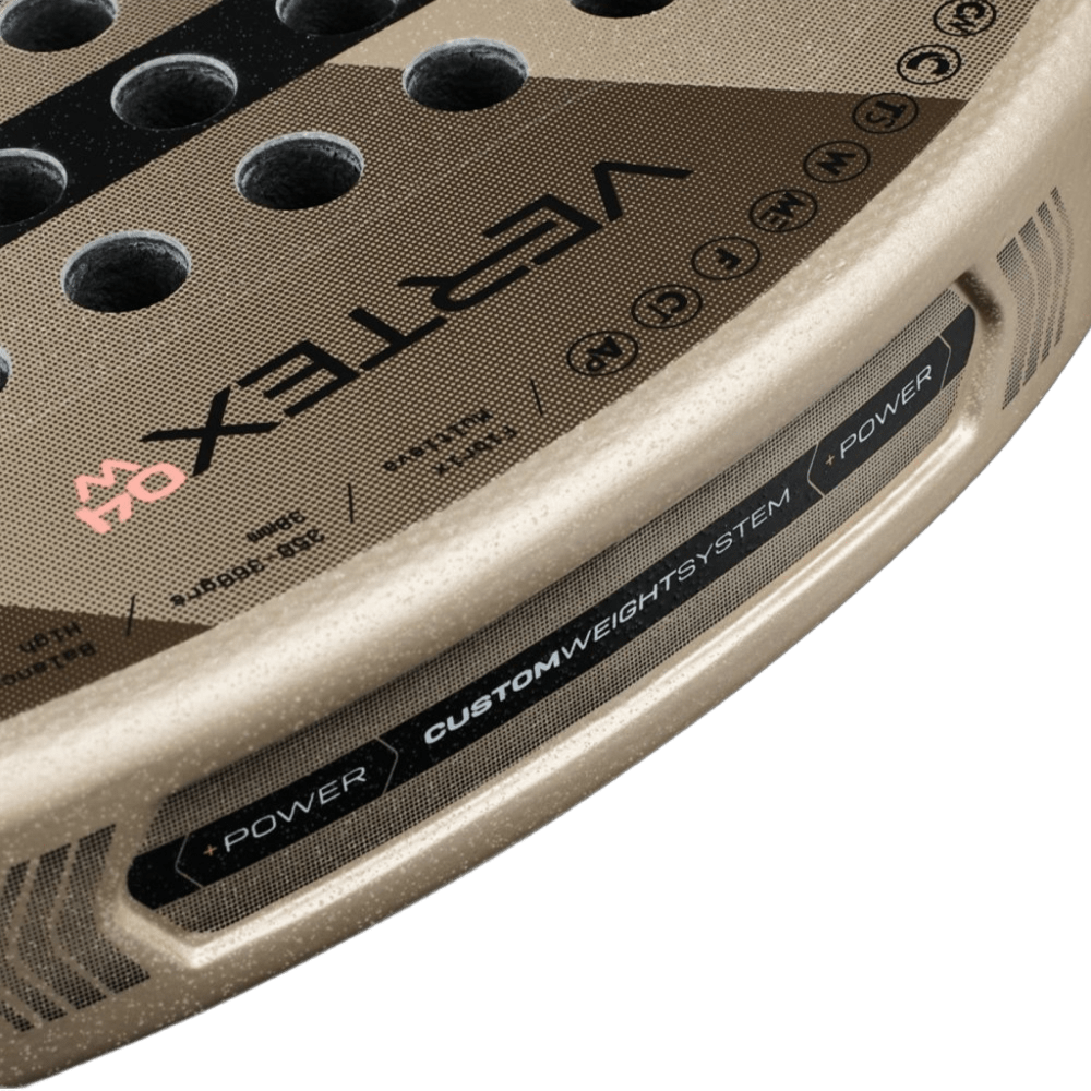 The Vertex 04 Woman increases the amount of grain in the last layer of the racket’s face, achieving more pronounced and precise effects that will allow you to dominate every shot. This increase in the amount of grain not only enhances the generation of aggressive spin on slices, volleys, layups, and smashes, but also makes this technology more durable over time, ensuring superior and consistent performance for more matches.