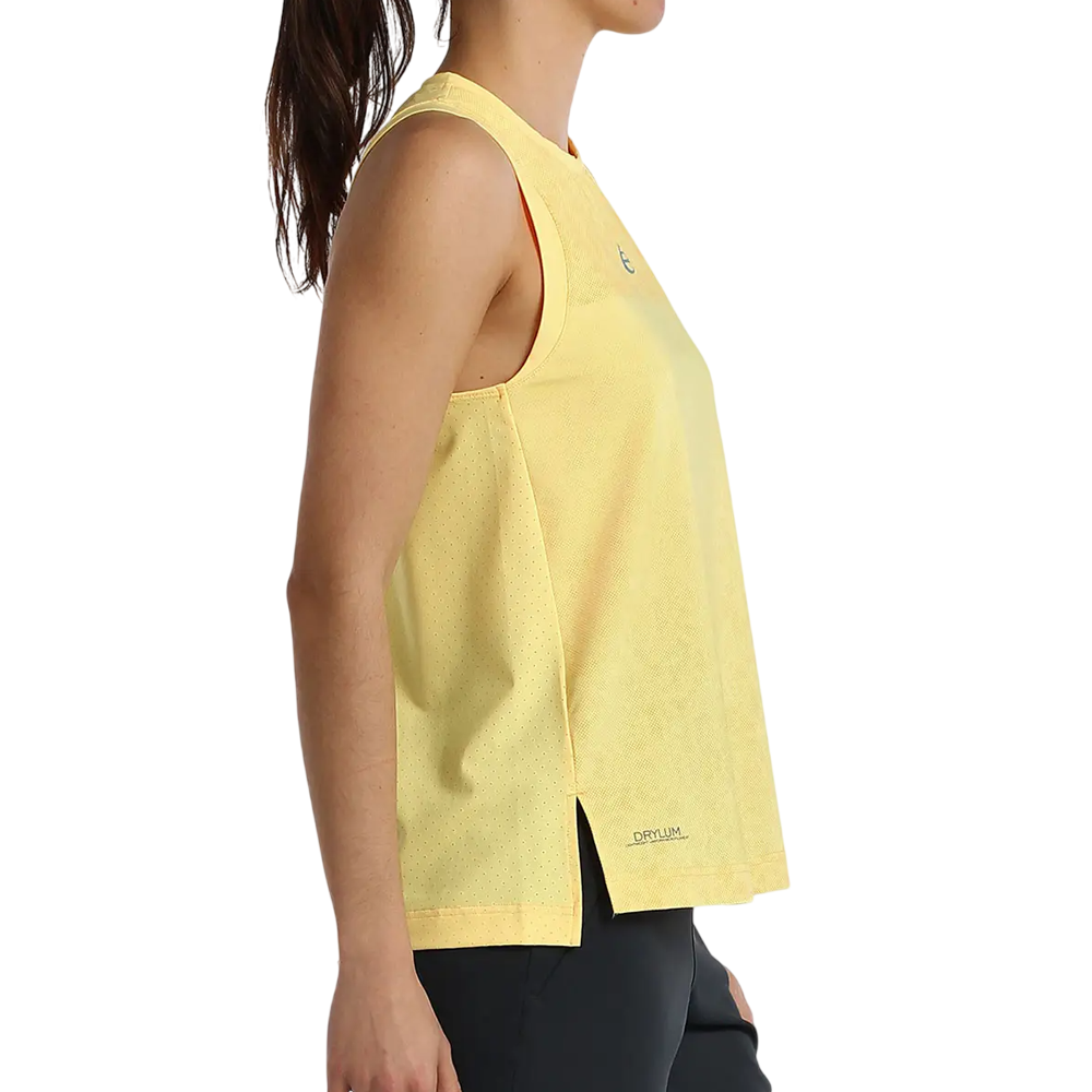 It features wide straps and a crew neck for a stable and flattering fit during play. Its design incorporates side slits and a slightly longer back, allowing for a better fit and greater coverage with every movement.