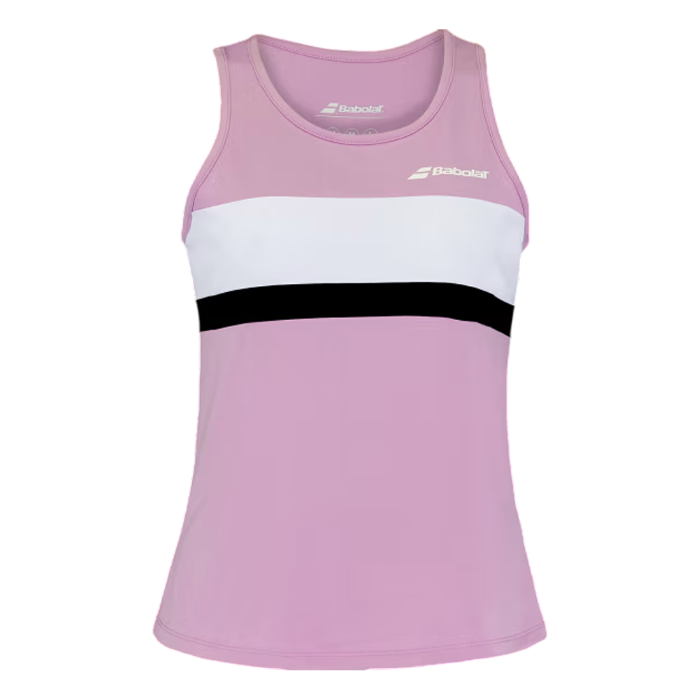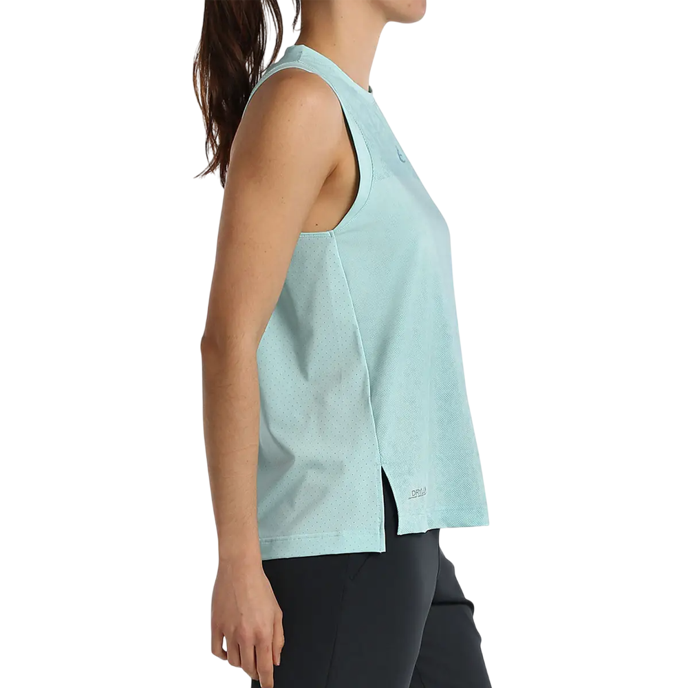 It features wide straps and a crew neck for a stable and flattering fit during play. Its design incorporates side slits and a slightly longer back, allowing for a better fit and greater coverage with every movement.