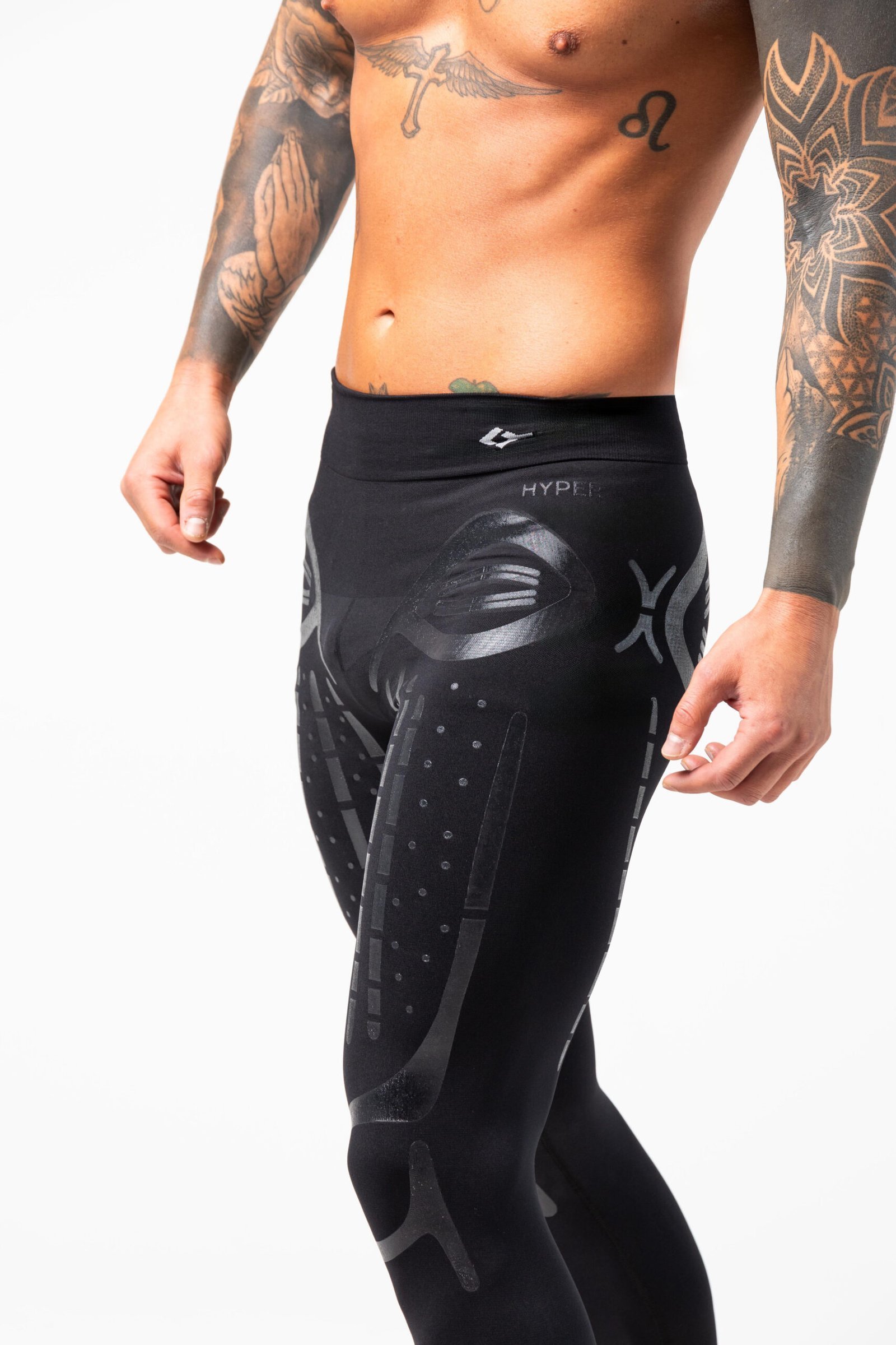 HYPER MAN is the first biomechanical men’s leggings designed to provide comprehensive support during physical activity by combining graduated compression, screen printing and bioceramic applications to maximize performance and reduce recovery time.