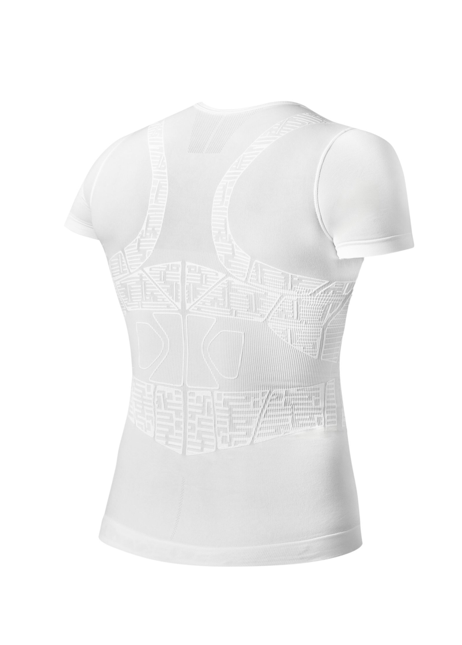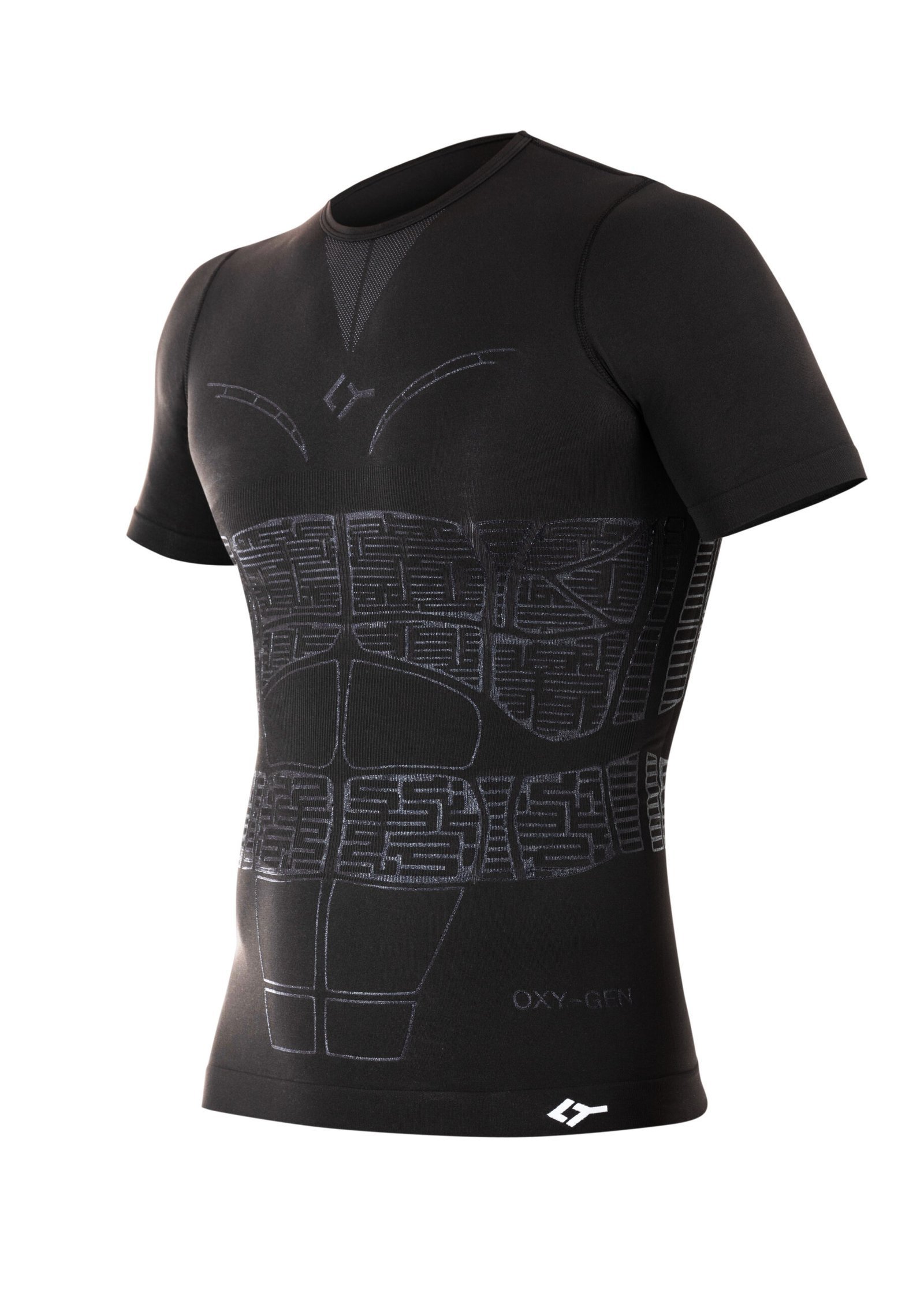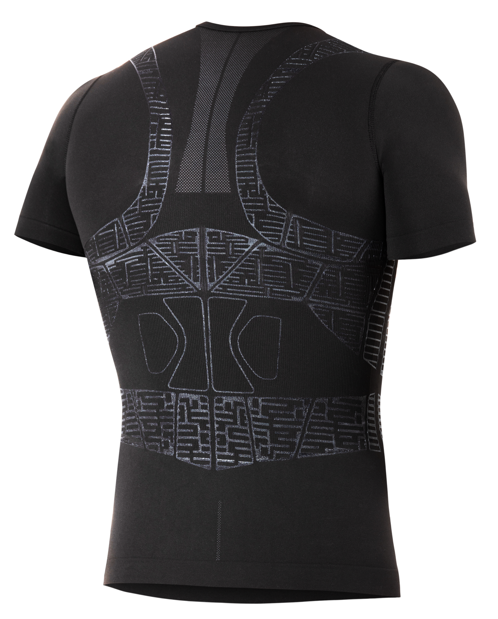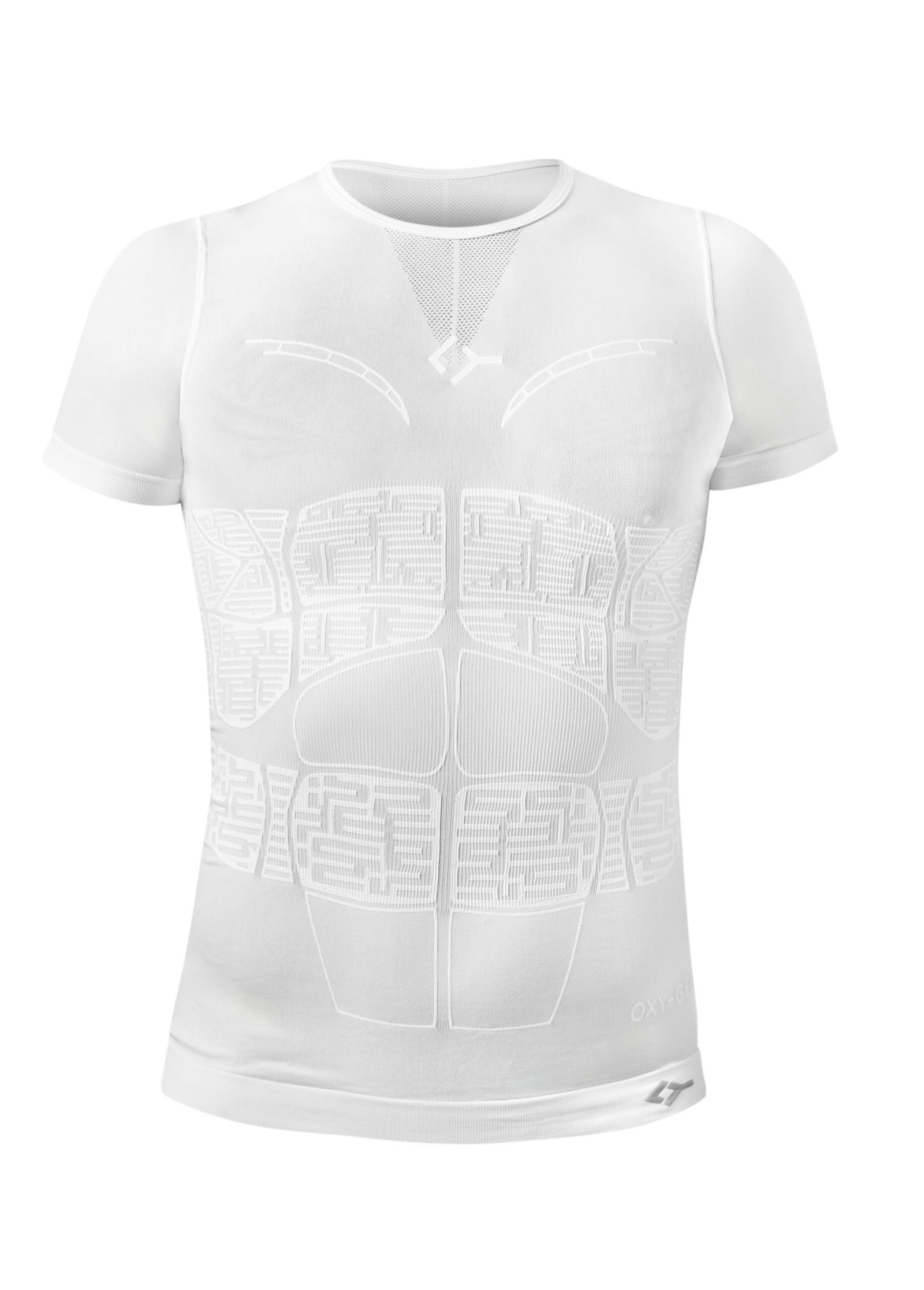 The OXY-GEN mesh is the first biomechanical mesh designed to improve breathing and optimize sports performance. Using selective compressions generated by silicone applications, this mesh enhances muscle tone and diaphragmatic work, benefiting respiratory processes and facilitating correct posture.
