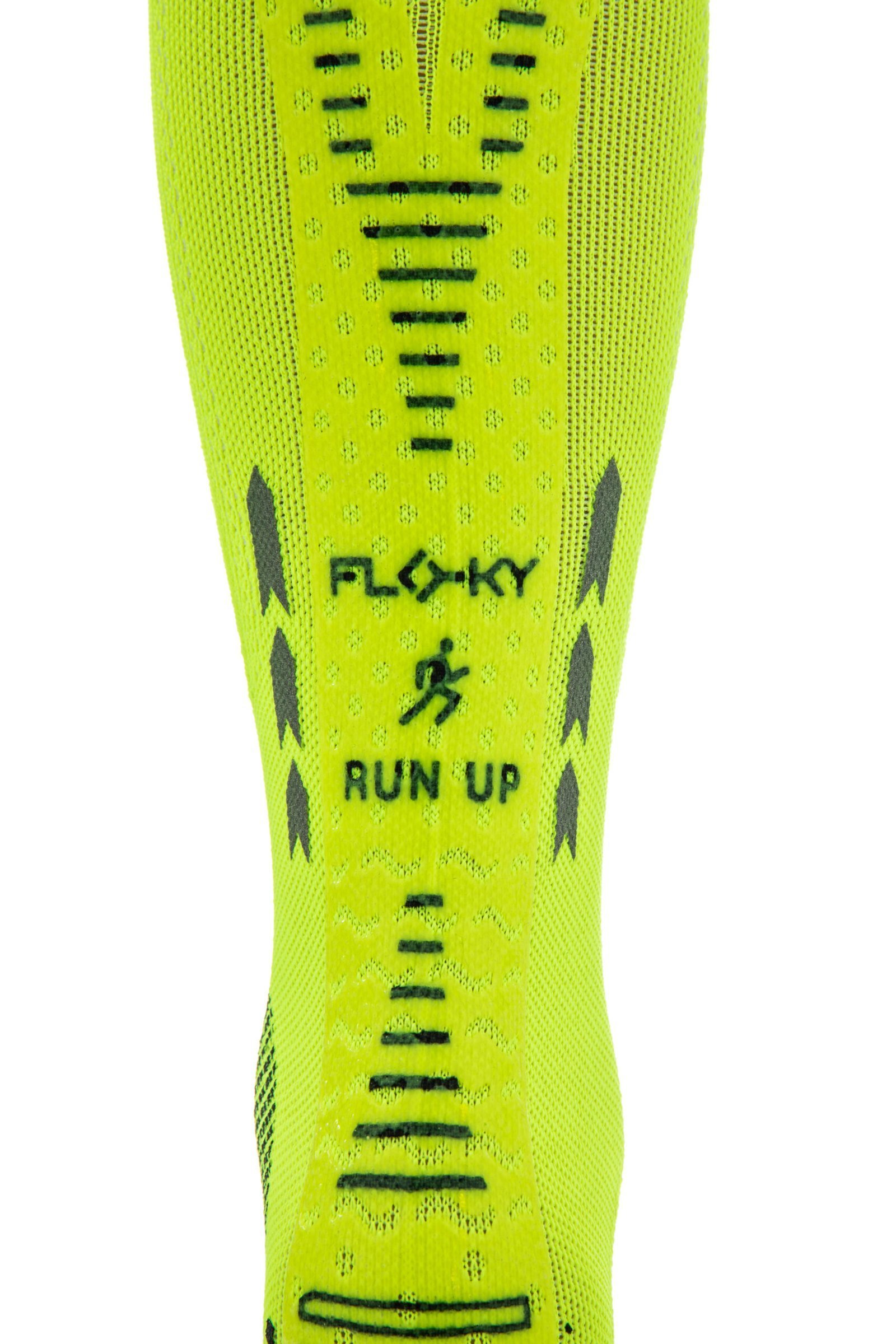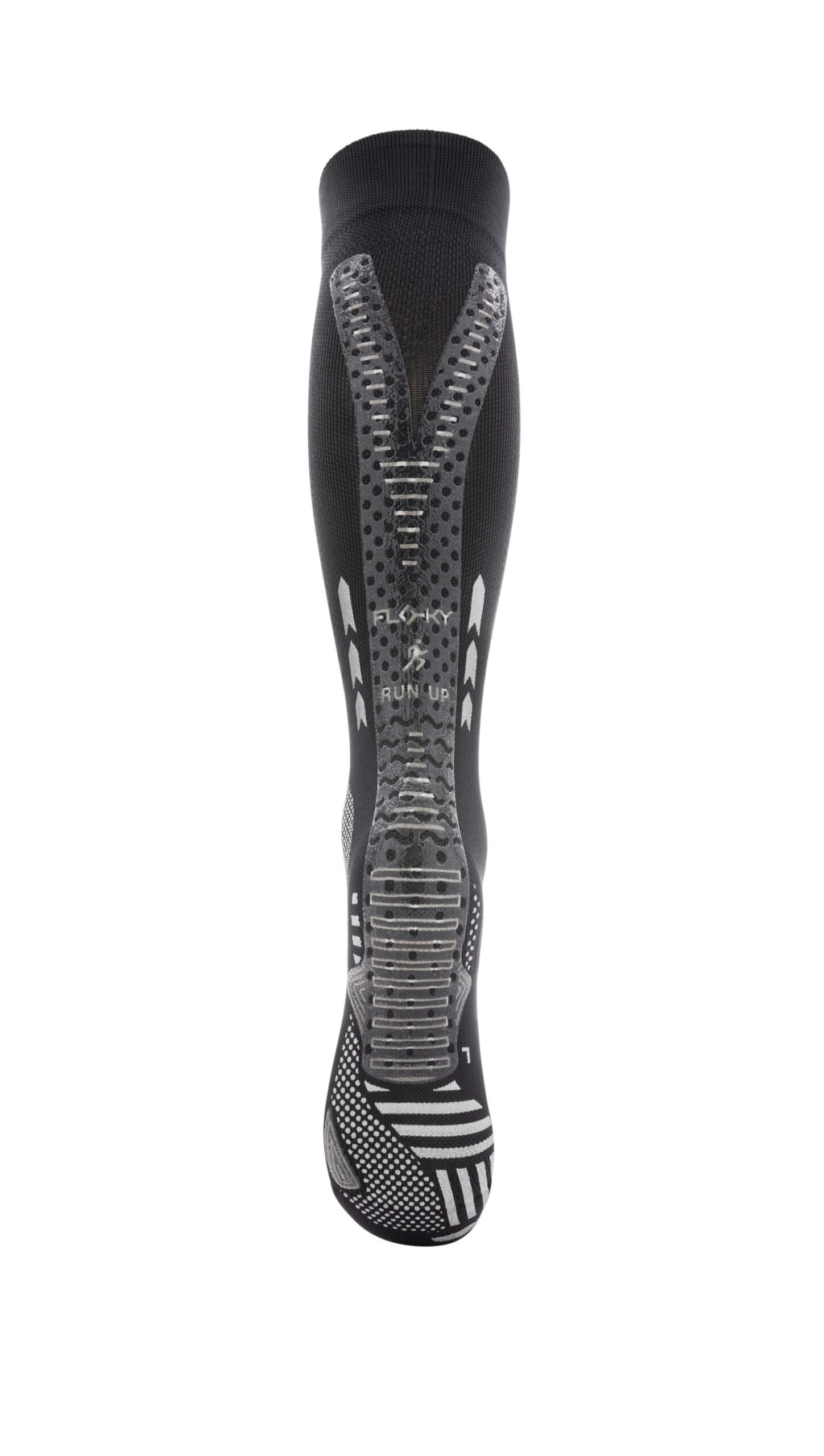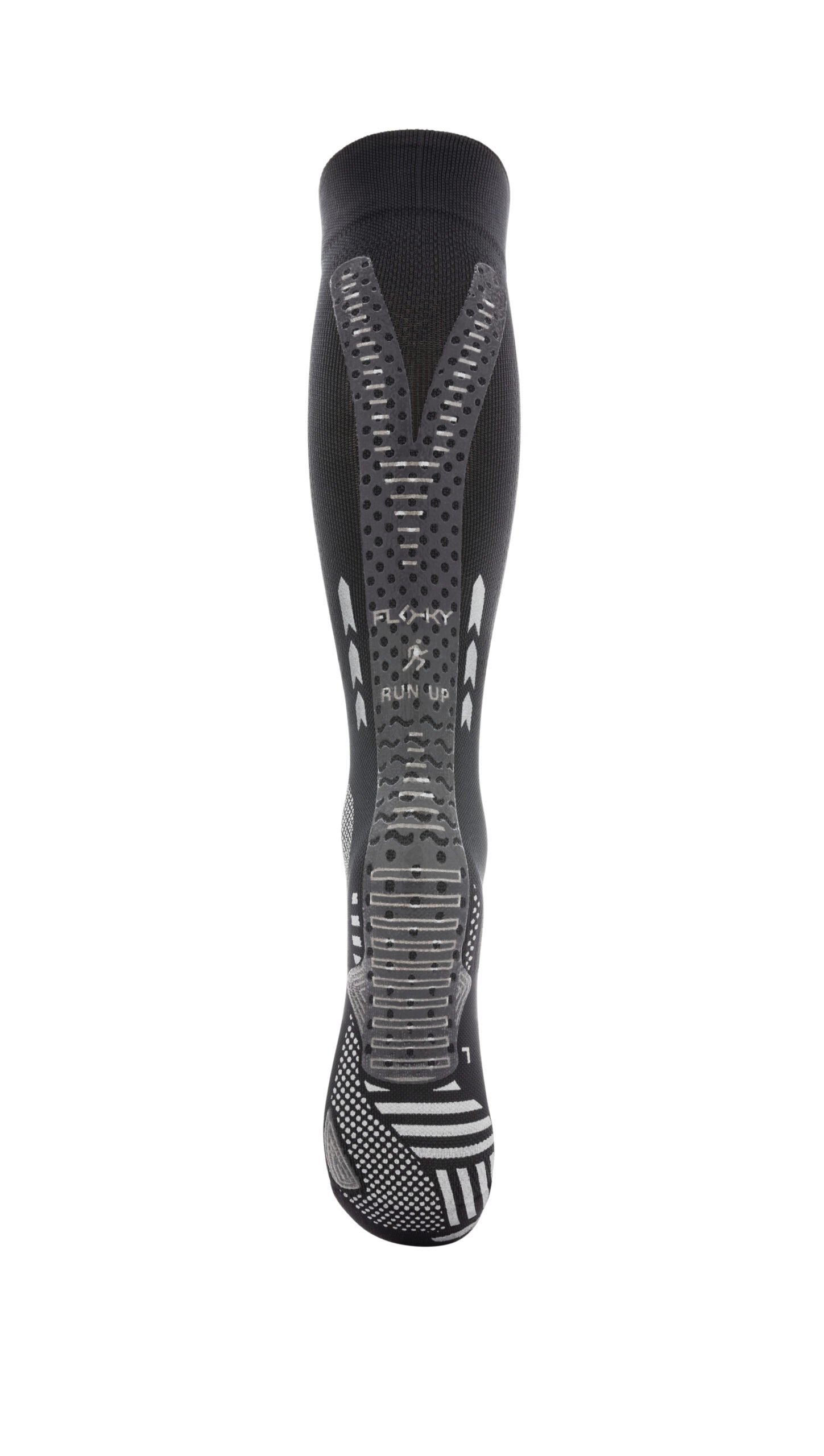 RUN UP LONG is the running-specific sock designed by FLOKY to provide ameliorative support of all biomechanical functions related to the foot and leg while allowing protection from injury and wear and tear, speed of recovery, increased performance and environmental protection.
