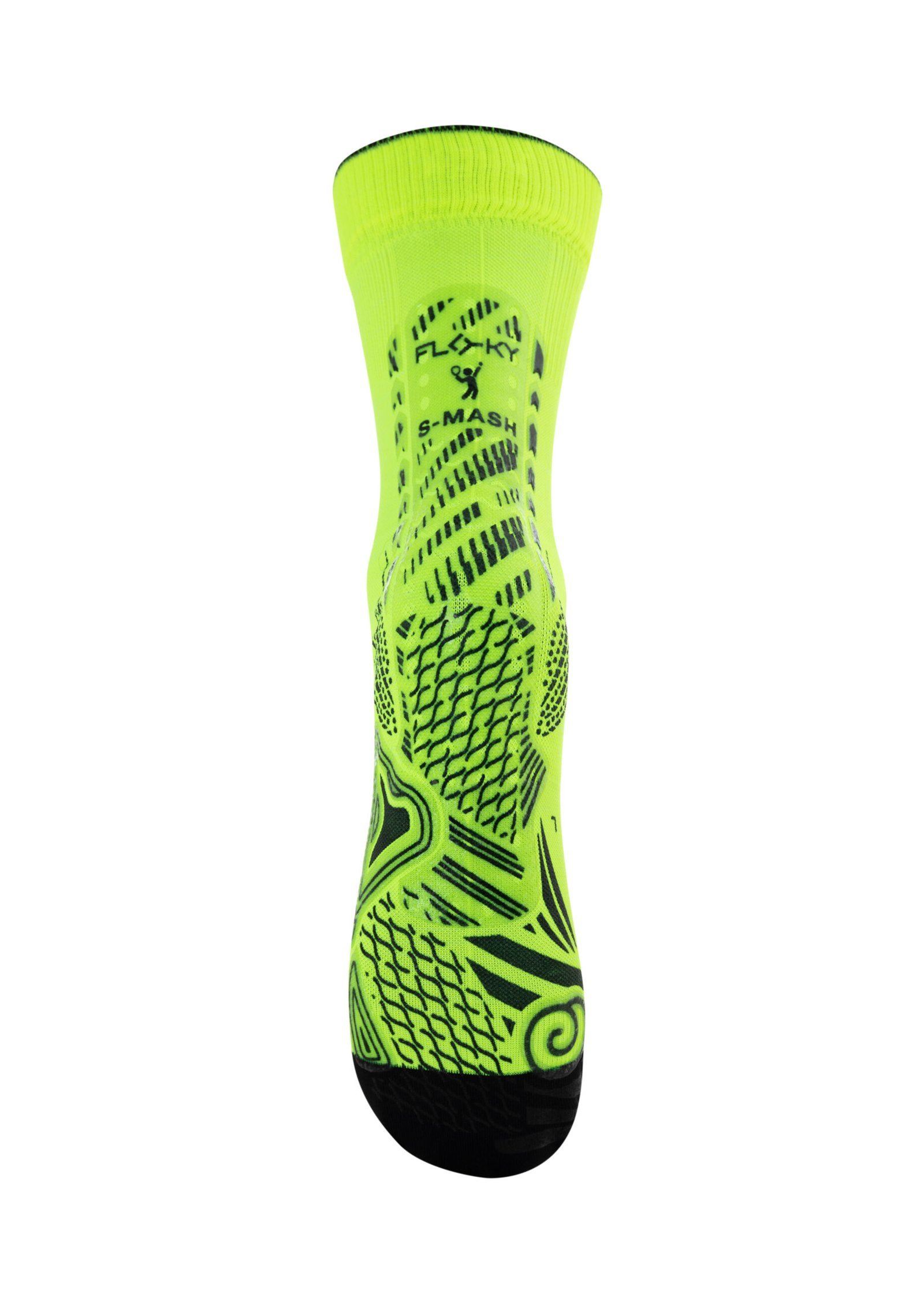 for racket sports. Its special cushion effect finish and the introduction of a ribbed fabric allow the foot to be enveloped in the best possible way, guaranteeing pro- tection and greater comfort.