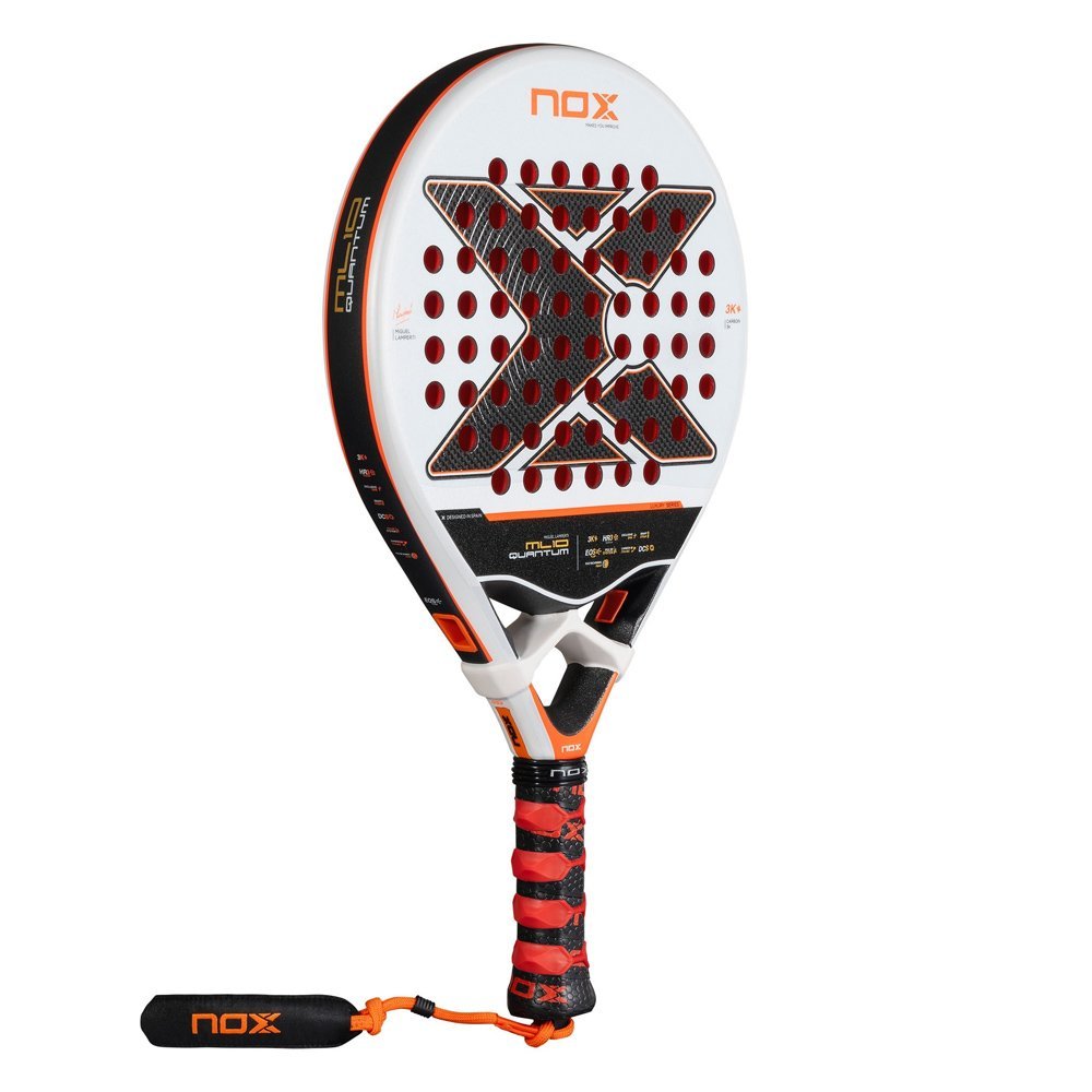 The new ML10 Quantum 3K retains the iconic combination of materials of its predecessors: 3K carbon fiber and NOX’s classic HR3 rubber, Miguel Lamperti’s favorite, with the addition of the Eva color change. A “plug and play” racket that is easy to adapt, with an intermediate feel characteristic of NOX rackets. It incorporates the EXCLUSIVE SPIN technology, with double rough finish: 3D hexagonal in the center and sand texture in the rest. This combination improves control and adds more spin to the ball.