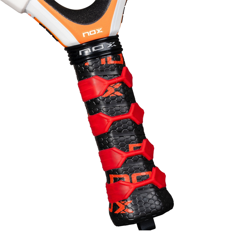 NOX Custom Grip® technology (certified by Testea Padel) and Pulse System contribute to the absorption of vibrations that reach the hand, reducing joint fatigue. Included is the pioneering Smartstrap® replaceable safety lacing system. More hygienic, safer and fully customizable.