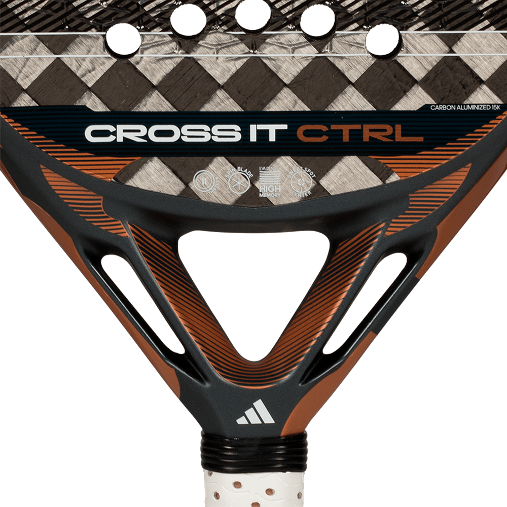 Take command of the match and dictate the pace of every rally. The adidas Cross it ctrl 2026 padel racket elevates control to its maximum expression, giving you the precision and confidence to place the ball exactly where you want it. The round design centers the weight perfectly, providing unmatched stability and total control in every phase of the game. Experience explosive speed and effortless swing acceleration through the DYNAMIC AIR FLOW system, which cuts through the air. The high-density EVA High Memory core delivers a reactive, firm ball output, complementing the solid feel of the Carbon Aluminized 15K surface, ensuring the ideal mix of stiffness and comfort. The EXTRA POWER GRIP helps expand the sweet spot for controlled power, and the SPIN BLADE MOLD texture ensures you can apply clean, precise spin on every cut and topspin shot. This year we are introducing an exciting new product: the new adjustable rope cord with a padded wrist strap, which ensures maximum comfort on the wrist.
