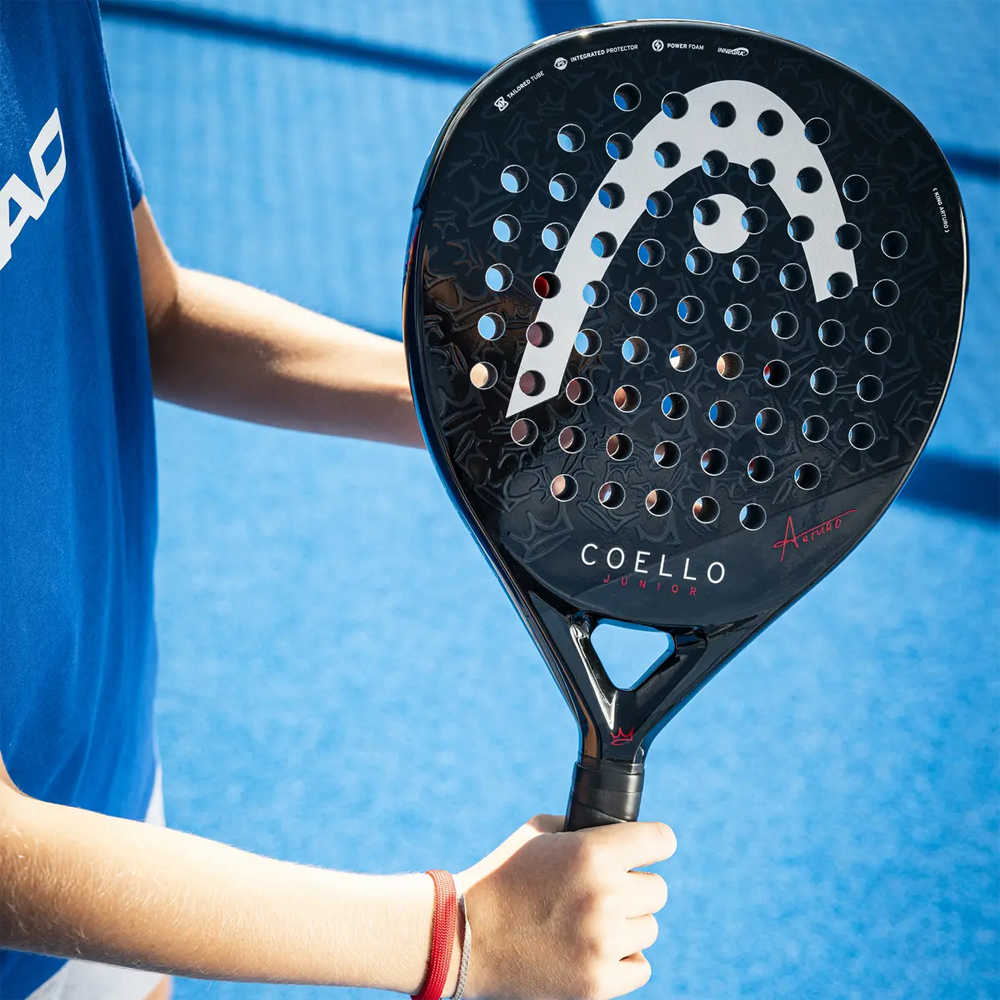 King Arturo’ is inspiring the next generation of padel players – and now juniors can play with a racquet that the world number one designed and developed in collaboration with HEAD. Part of the exclusive Arturo Coello collection, the COELLO JUNIOR 2025 PADEL RACQUET has a premium, glossy look with a design featuring personal touches such as his crown logo and signature. Playing padel will be even more fun for juniors with an oversized, teardrop-shaped racquet that offers easy power and has a larger sweetspot for more tolerance and forgiveness. Lightweight and with a low balance, the racquet is easy to maneuver while the fiberglass hitting surface supplies a softer feel and touch.