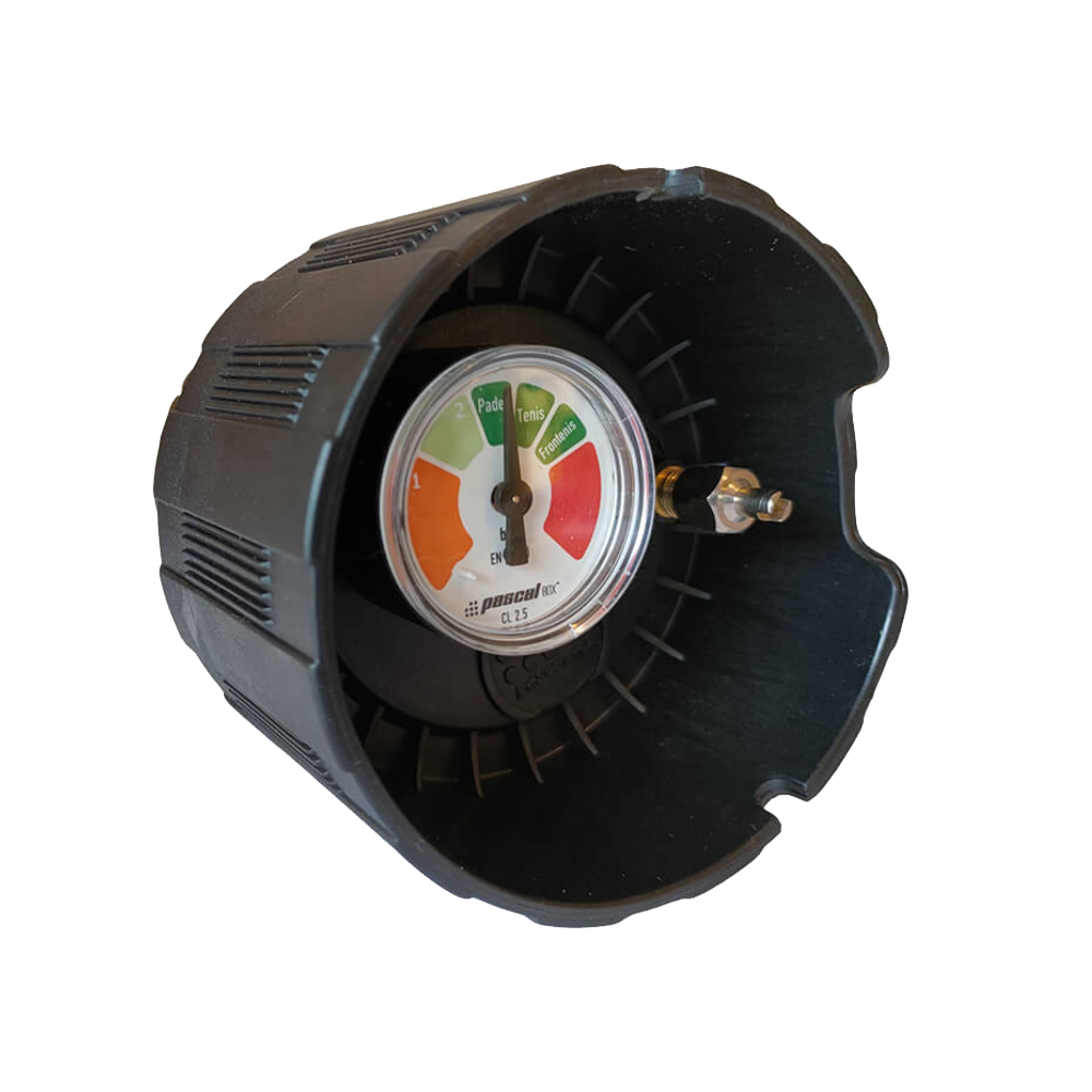 - Maximum precision pressure gauge calibrated according to the official parameters of the International Padel and Tennis Federations