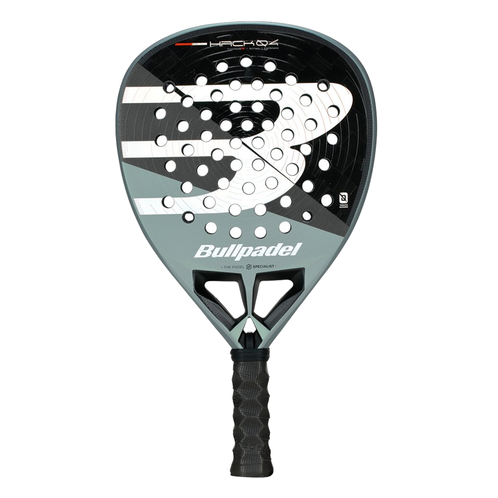 The hole pattern on a padel racket plays an important role in performance, influencing factors such as control, ball output, and power. The new hole pattern in the Hack 04 line has been redesigned with a concentric circle format, allowing for a more balanced distribution, greater flexibility across the racket face, and thus greater ball output and a larger sweet spot.