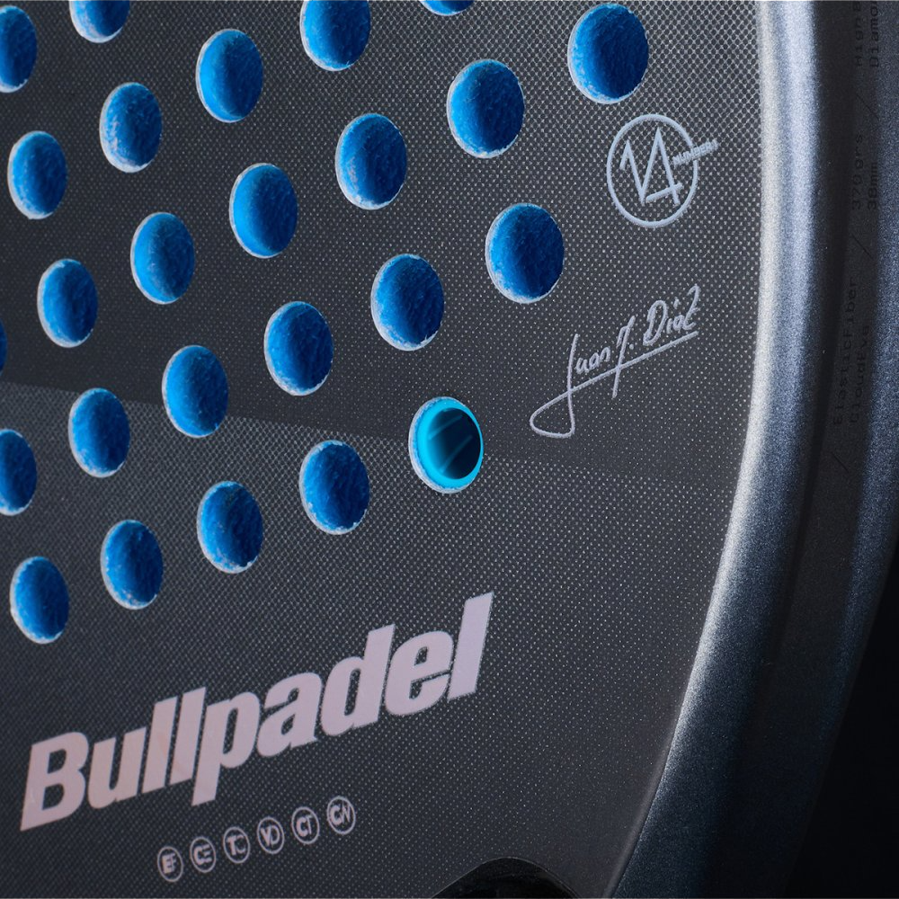 ElasticFiber, Bullpadel’s new fiber, designed to optimise the flexibility of the racket’s face and offer a significant reduction in vibrations. Its ability to absorb impacts and envelop the ball improves the playing experience.