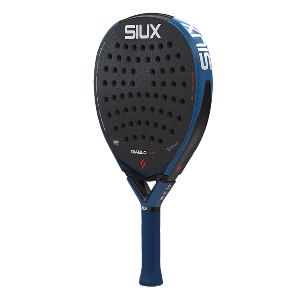 La SIUX DIABLO PRO 2026 ROYAL BLUE es una pala avanzada a profesional con forma de lágrima que ofrece un equilibrio polivalente. Equipada con núcleo de goma EVA y carbono Textreme 18K combinado con 3K, garantiza resistencia y excelente salida de bola. Su peso medio (355-375 g) y acabado satinado con textura 3D aportan precisión y comodidad, ideal para jugadores que buscan rendimiento equilibrado en todas las facetas del juego.