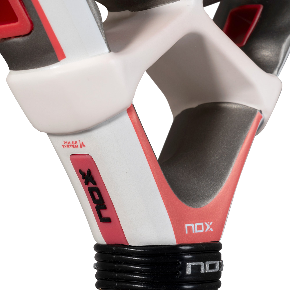 NOX Custom Grip® technology (certified by Testea Padel) and Pulse System contribute to the absorption of vibrations that reach the hand, reducing joint fatigue. Included is the pioneering Smartstrap® replaceable safety lacing system. More hygienic, safer and fully customizable.
