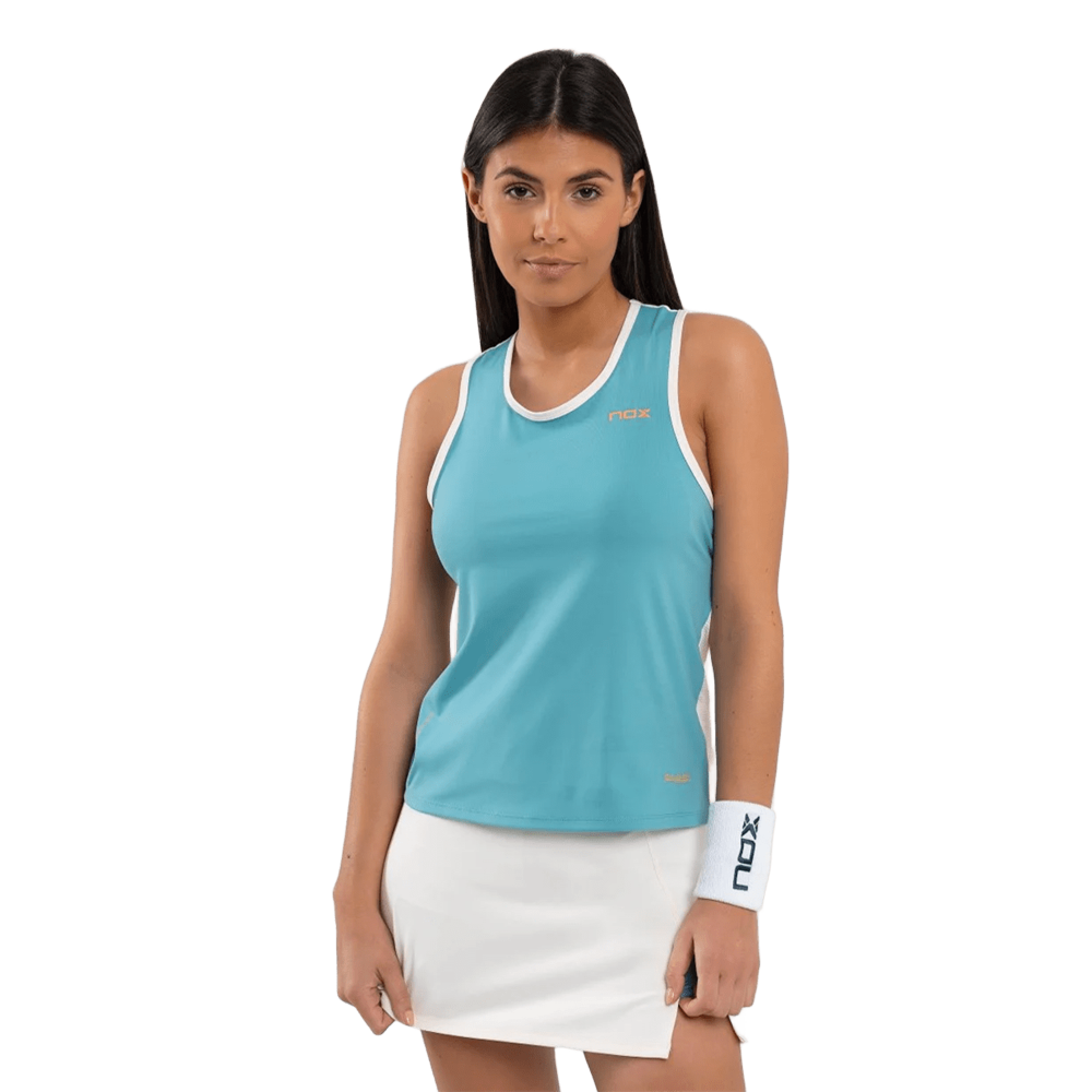 Lightweight and great comfort in a single garment. The NOX PRO Dusty Turquoise women’s tank top offers maximum freedom of movement on the court, with a comfortable fit and a figure-flattering design without sacrificing functionality.
